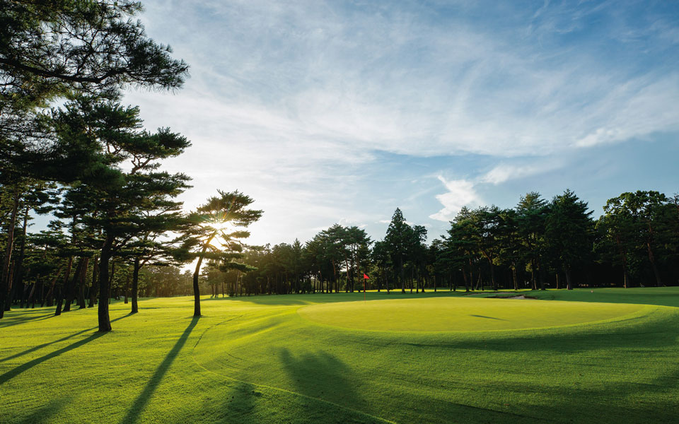 松など丈の高い樹木でセパレートされている林間コース。ゆるやかなアンジュレーションからなるフェアウェイには十分な広さがあり、各ショットのびのび打つことができます。