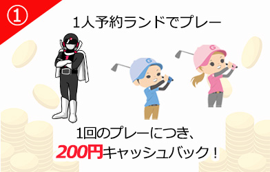 内容 | 1人予約ランドご利用回数1回につき、200円をキャッシュバックします。 プレーした翌月16日以降に、前月のご利用回数分のキャッシュバック対象金額がマイページ上にてご確認いただけます。 |