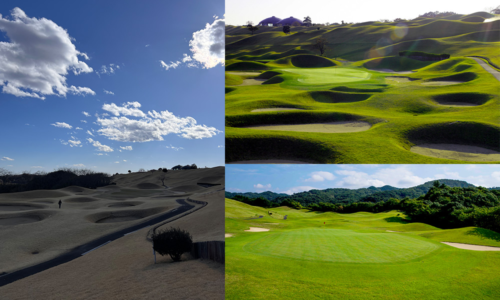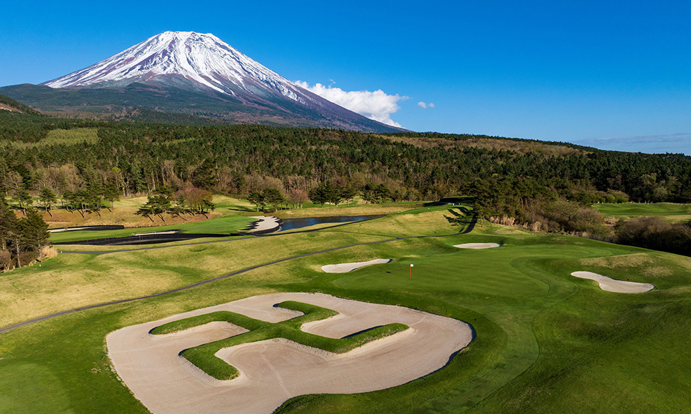 16番ホールのグリーン手前には、まるでグリーンへの侵入を阻止するかの如く巨大な卍バンカーが。背景の富士山と相まって、まるでラスボス戦のステージのようなゾクっとする壮大感があり、”富士の守護陣”のよう。他のホールにも特徴的なバンカーが多数あるとか…。