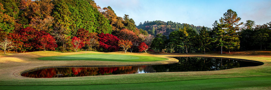 関西屈指の難易度を誇るトーナメントコース。紅や黄金に装う自然美に心落ち着けて攻略を。