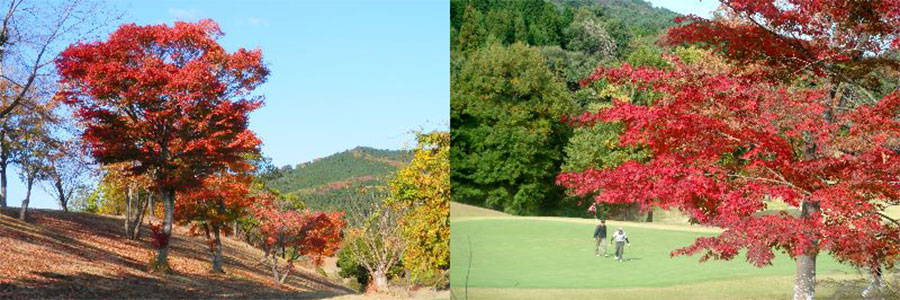 赤と黄のコントラストが美しい秋景色が全てのホールで満喫!赤く色づいた紅葉がゴルファーをお出迎え。