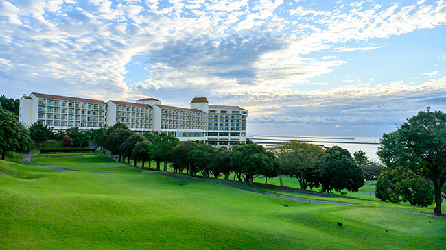 国の天然記念物「照島」を目の前に雄大な太平洋を望むリゾート地「小名浜」にあるシーサイドコース。波のうねりをイメージした設計のフェアウェイやグリーンに気づくことができればそこに新たな景観が広がります。宿泊はすべての部屋が太平洋を一望できるスペイン調の優雅なホテルで、リゾートホテルならではの大浴場は神経痛、筋肉痛、疲労回復などに効果がある天然温泉です。露天風呂から望む太平洋は絶景!!